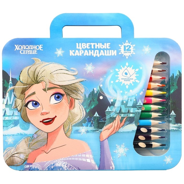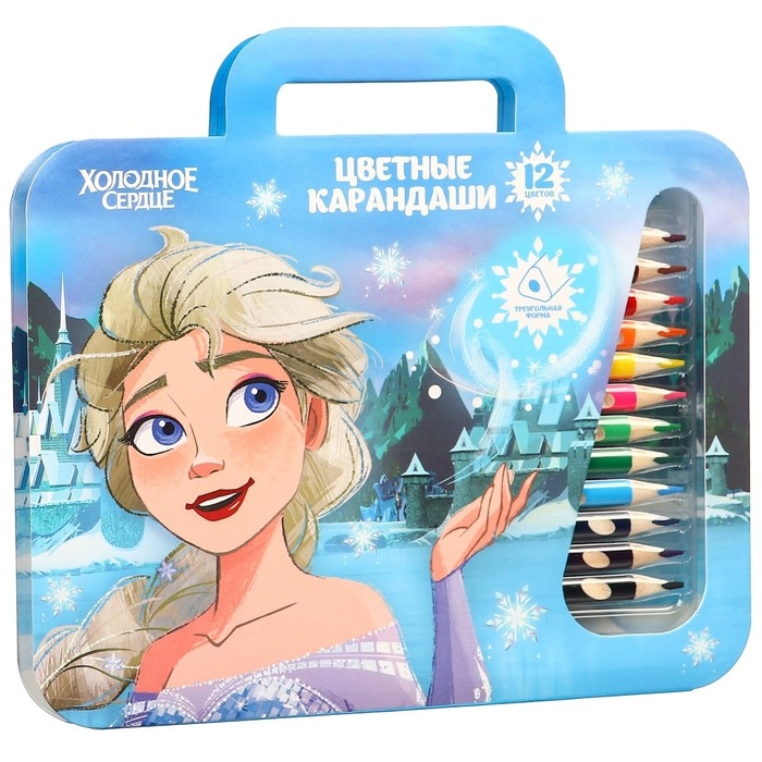 Цветные карандаши, 12 цветов, трехгранные, Холодное сердце