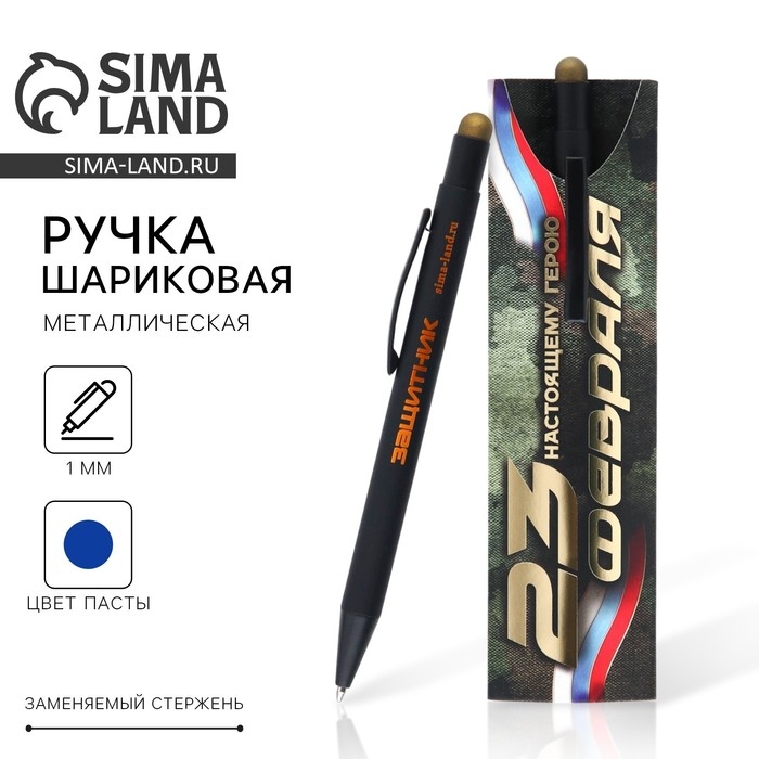 Ручка металл, синяя паста с УВ-печатью в конверте «23 февраля», 1 мм