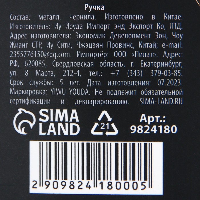 Ручка отличное дополнение к подарку. Яркий дизайн несомненно привлечет внимание и будет выделяться среди других предметов, а удобная форма корпуса позволит использовать ее с комфортом.
