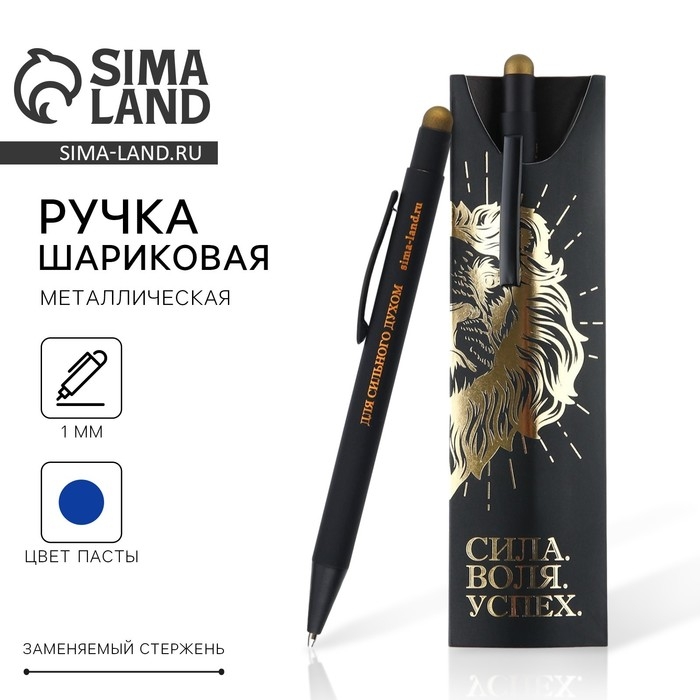 Ручка металл, синяя паста с УВ-печатью в конверте «Сила. Воля», 1 мм
