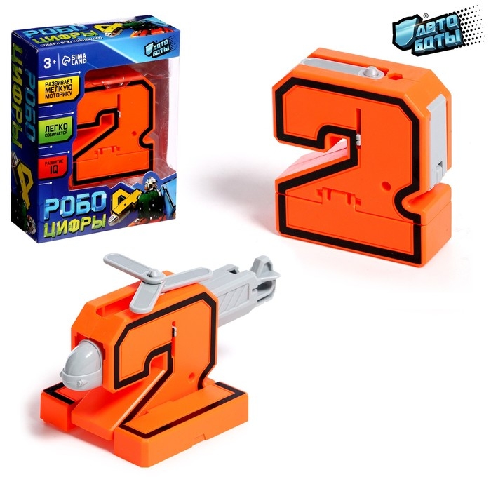 Робот-трансформер «Цифра 2» способен победить любого врага в воздухе благодаря своей трансформации в летательный аппарат. Это интересный маленький друг, который поможет вашему ребенку развить воображение, мелкую моторику и пространственное мышление. Малыш легко обучится счёту благодаря новому приятелю, ведь игрушка имеют яркий дизайн и проработанные элементы. Из простой фигурки робот сможет превратиться в мощный вертолёт, который победит любого противника и поможет ребёнку освоить новые навыки.