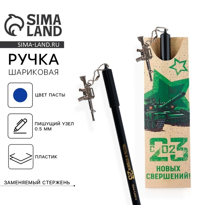 Ручка шариковая синяя паста 0.5 мм с подвеской автомат «Новых свершений» пластик