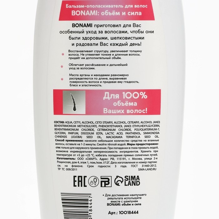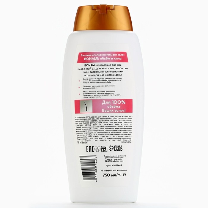 Бальзам для ослабленных волос с маслом арганы и макадамии, объём и сила, 750 мл, BONAMI