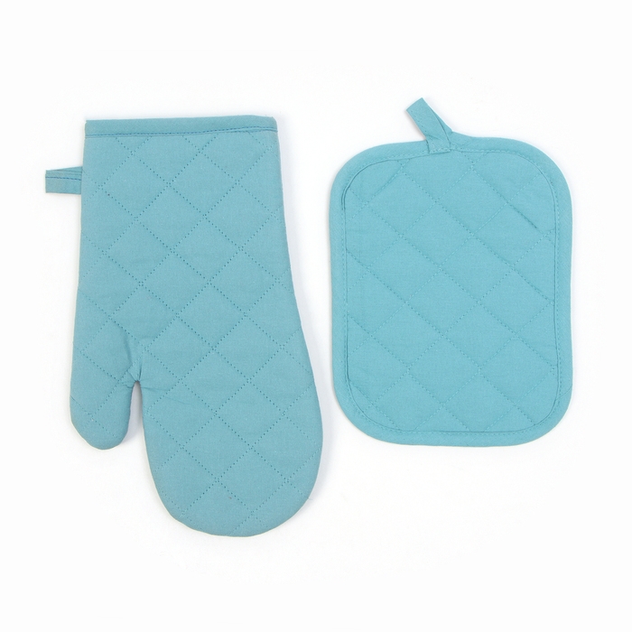 Набор кухонный Этель, цв. бирюза: варежка-прихватка 18х30 см, прихватка 18х21 см