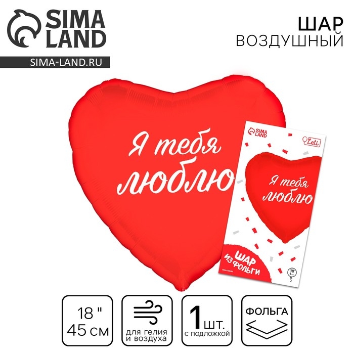 Воздушный шар фольгированный 18" «Я тебя люблю», сердце, с подложкой