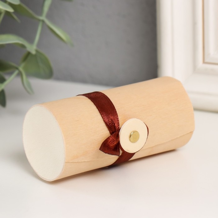 Шкатулка дерево под роспись тубус "Тонкий лист" с пуговкой 3,5х3,5х7,5 см