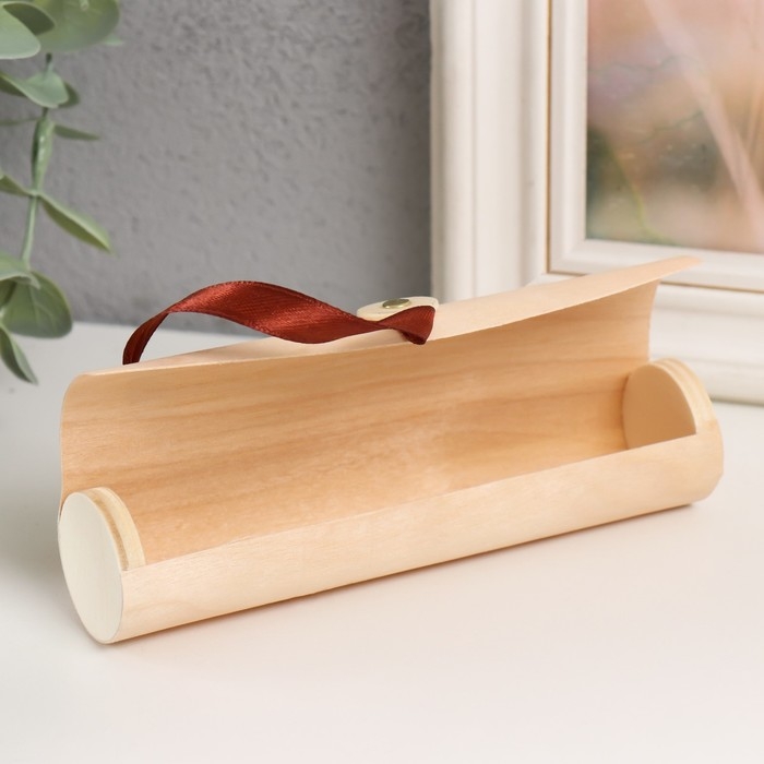Шкатулка дерево под роспись тубус "Тонкий лист" с пуговкой 3х3х13,5 см