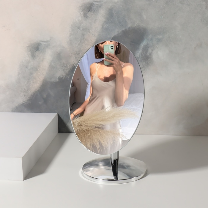 Зеркало настольное «Овал», зеркальная поверхность 13,5 × 17,5 см, цвет серебристый