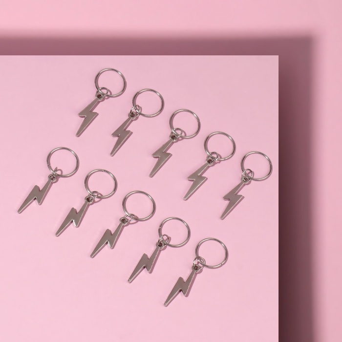 Пирсинг для волос «Молния», 4,1 × 1,3 см, 10 шт, цвет серебристый