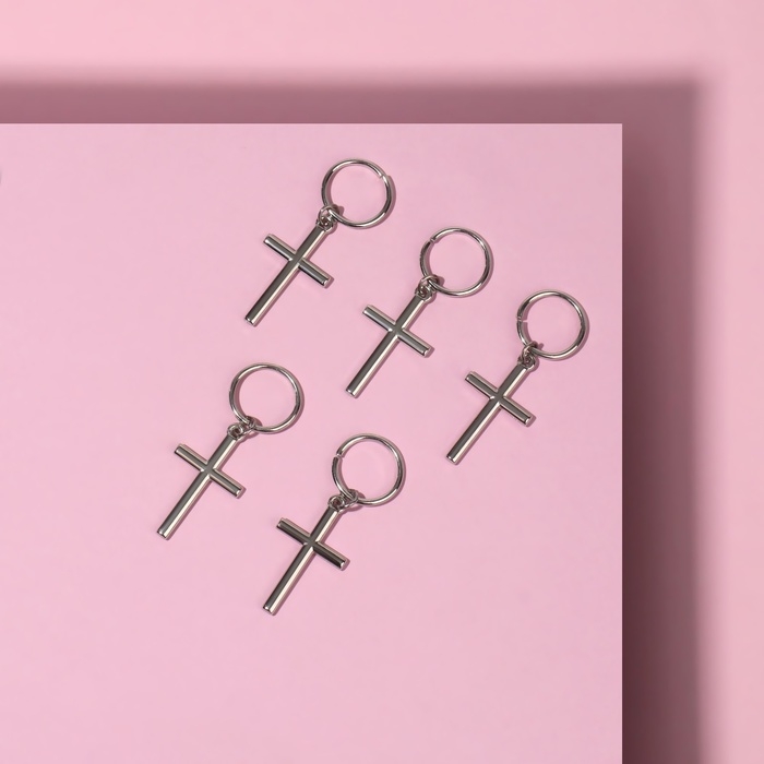 Пирсинг для волос «Крест», 3,7 × 1,3 см, 5 шт, цвет серебристый
