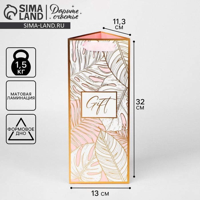 Пакет подарочный под бутылку, упаковка, «Подарочек», 13 х 32 х 11.3 см
