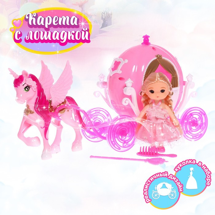 С кукольным набором идеи для игр приходят сами собой! Экипаж и лошадь позволят маленькой принцессе воспроизвести сказку о Золушке или сделать свою куклу настоящей королевой.