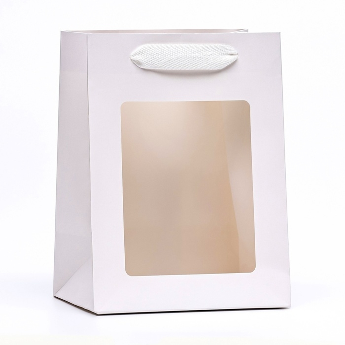 Пакет подарочный, с окном, 20 х 15 х 10 см, белый