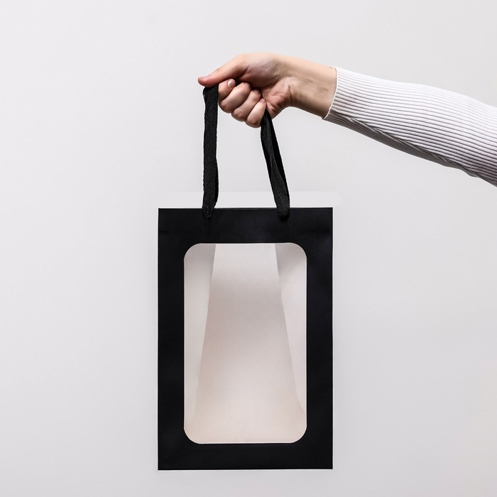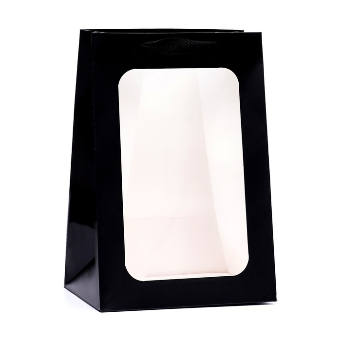 Пакет подарочный, с окном, 30 х 20 х 16 см, черный
