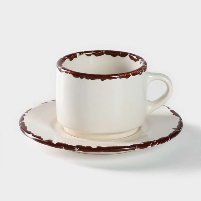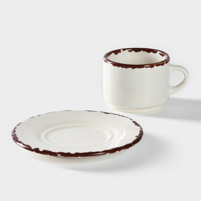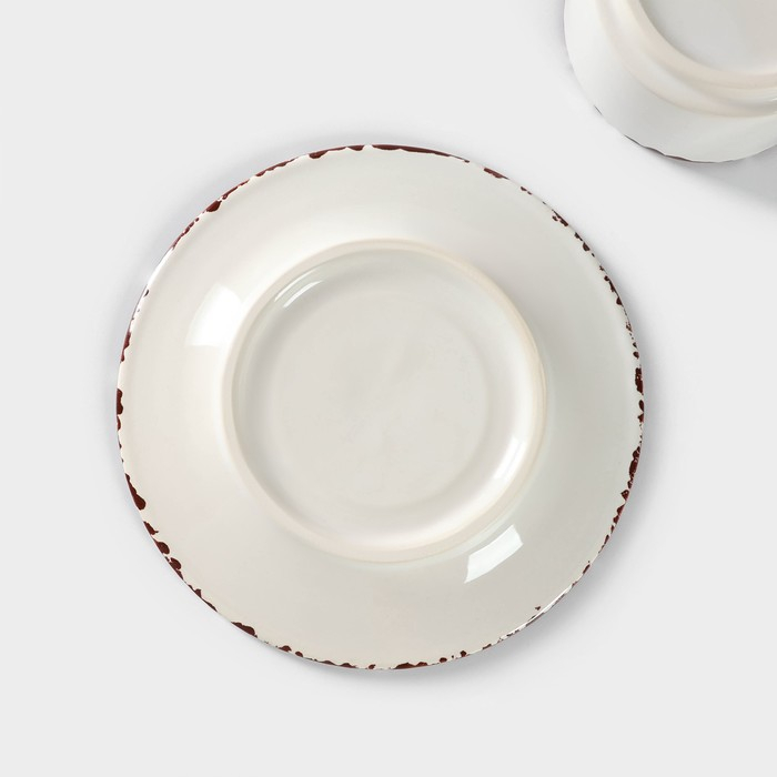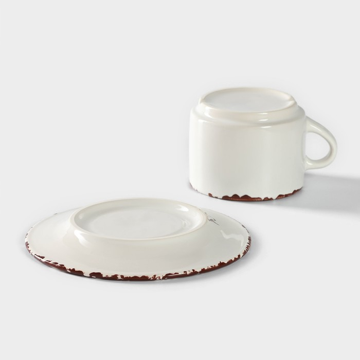 Чайная пара керамическая «Лист», 2 предмета: кружка с ложкой 180 мл, блюдце d=13,5 см, цвет белый