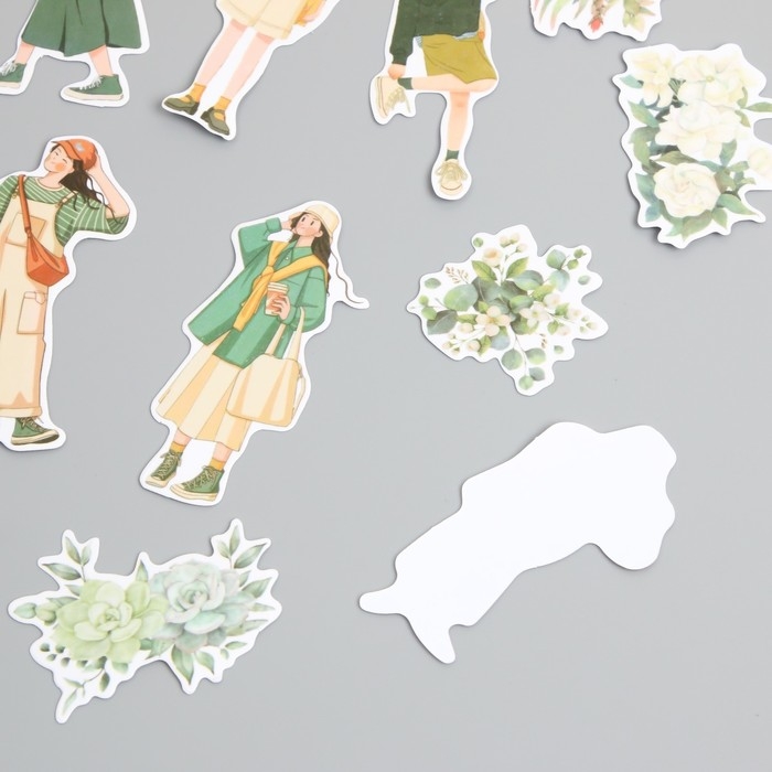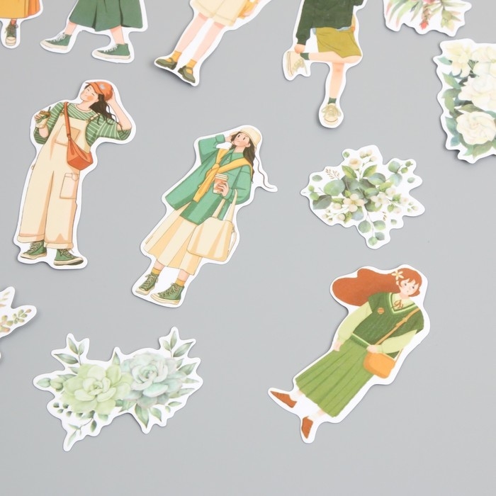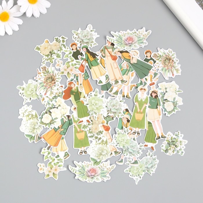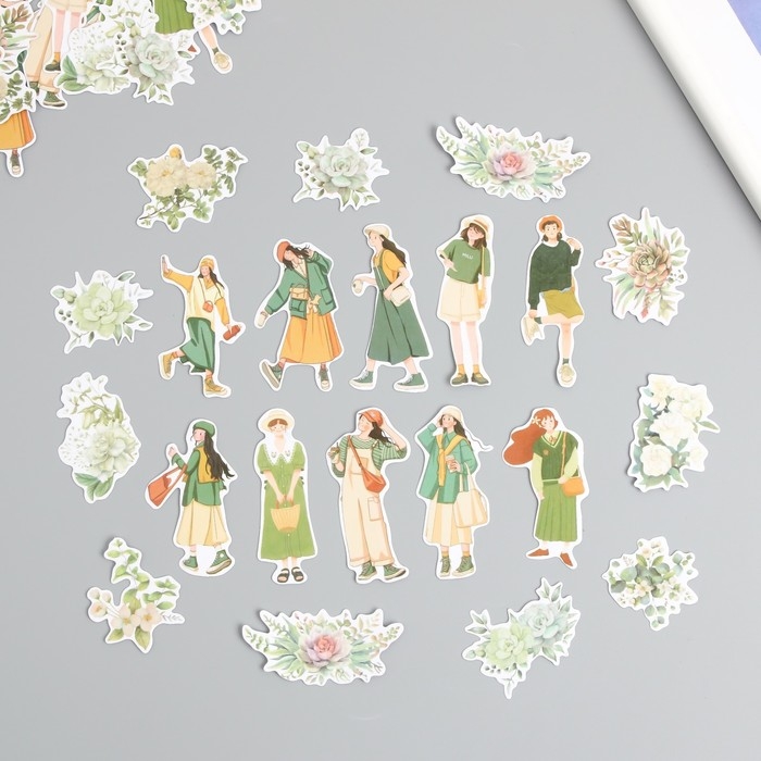Наклейки для творчества "Девушки и цветы. Зелёное настроение" 4х8 см н-р 40 шт 0,5х12х8 см