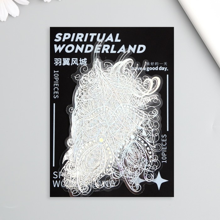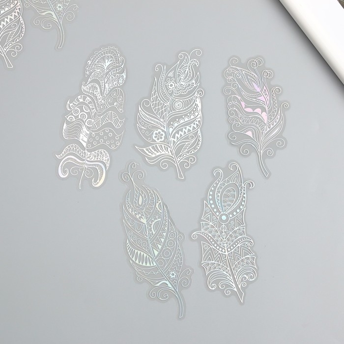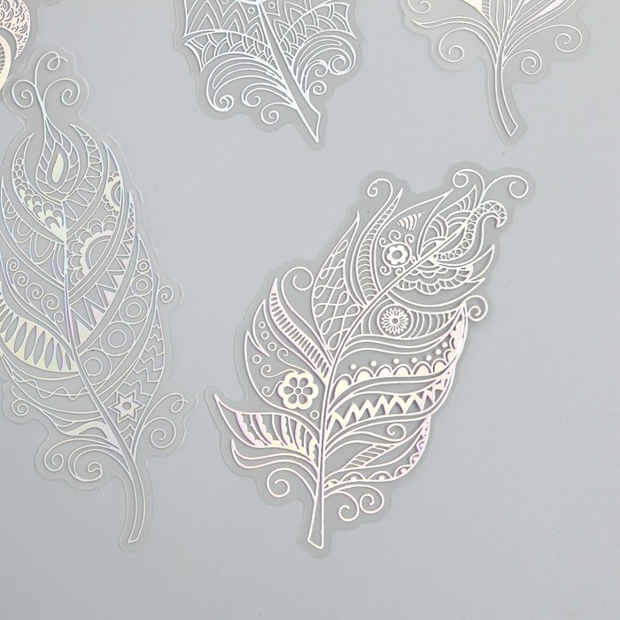 Наклейки для творчества "Голография. Перья" d=10 см набор 10 шт 0,2х14х11 см