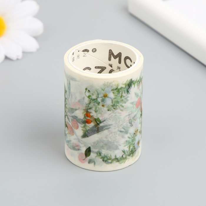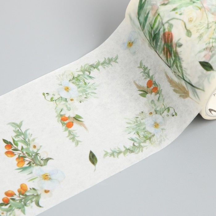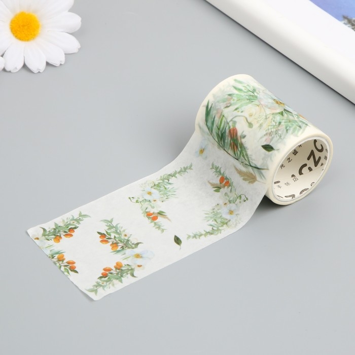 Клейкая лента бумага "Бело-оранжевые цветы" ширина 5,4 см намотка 3 м 5,4х3,8х3,8 см