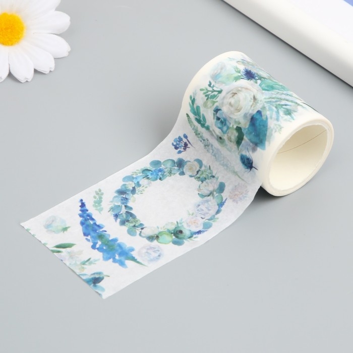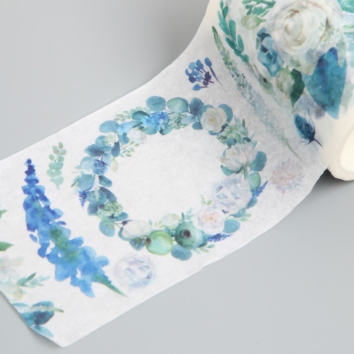 Клейкая лента бумага "Голубые цветы" ширина 5,4 см намотка 3 м 5,4х3,8х3,8 см