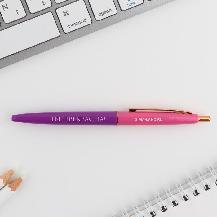 Ручка шариковая синяя паста 0.7 мм «Ты совершенна» пластик с тиснением на корпусе