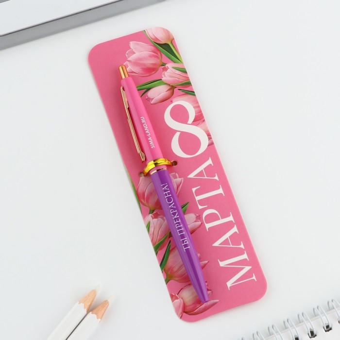 Ручка шариковая синяя паста автоматическая 0.7 мм «С 8 марта» пластик
