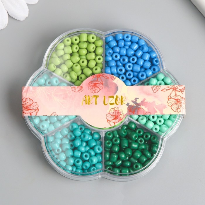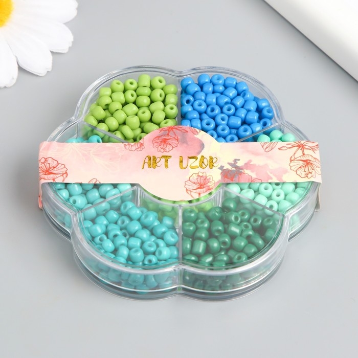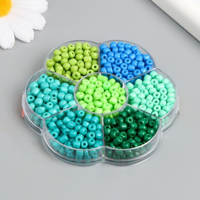 Бисер стекло 6/0 в цветке "Цвета леса" цветной 7 цветов х 8 гр 8,2х8,2х2 см