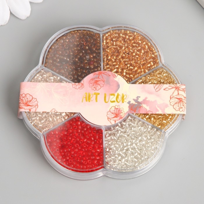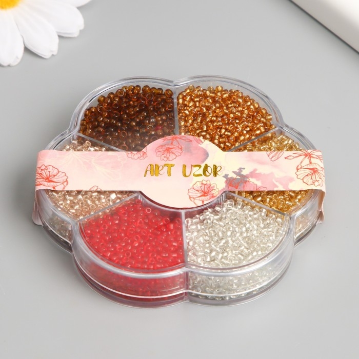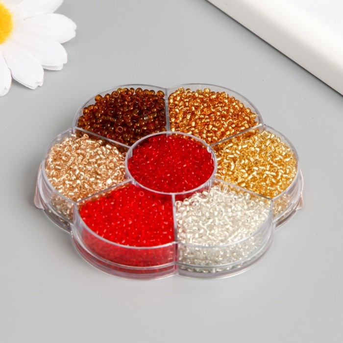 Бисер стекло 12/0 в цветке "Огонь" цветной прозрачный 7 цветов х 8 гр 8,2х8,2х2 см
