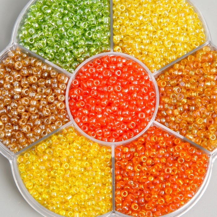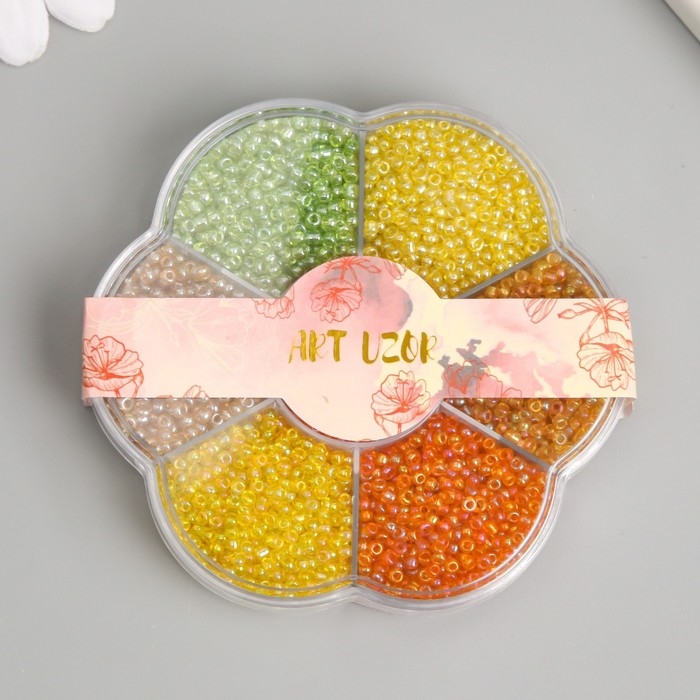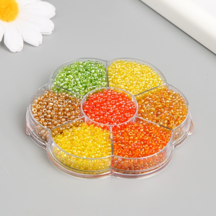 Бисер стекло 12/0 в цветке "Палитра жёлтого" перелив. перламутр 7 цветов х 8 гр 8,2х8,2х2 см 9904