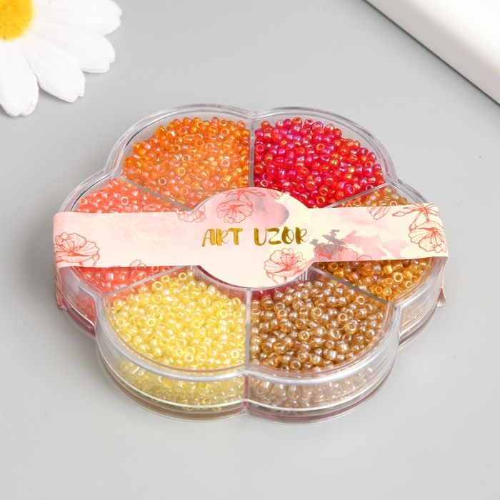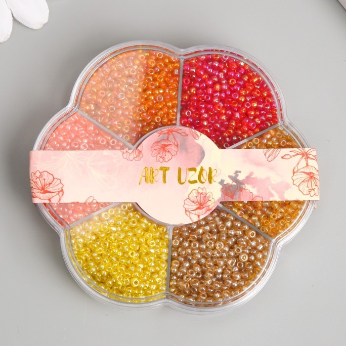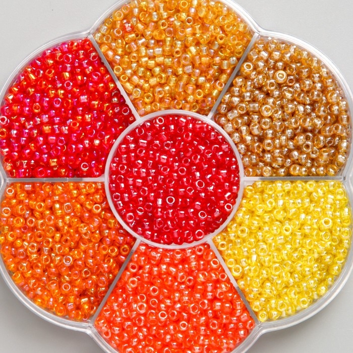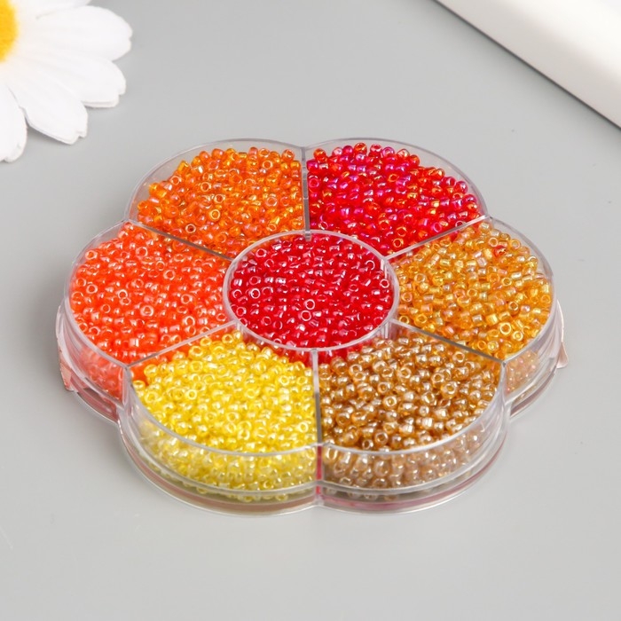 Бисер стекло 12/0 в цветке "Палитра красного" перелив. перламутр 7 цветов х 8 гр 8,2х8,2х2 см 990