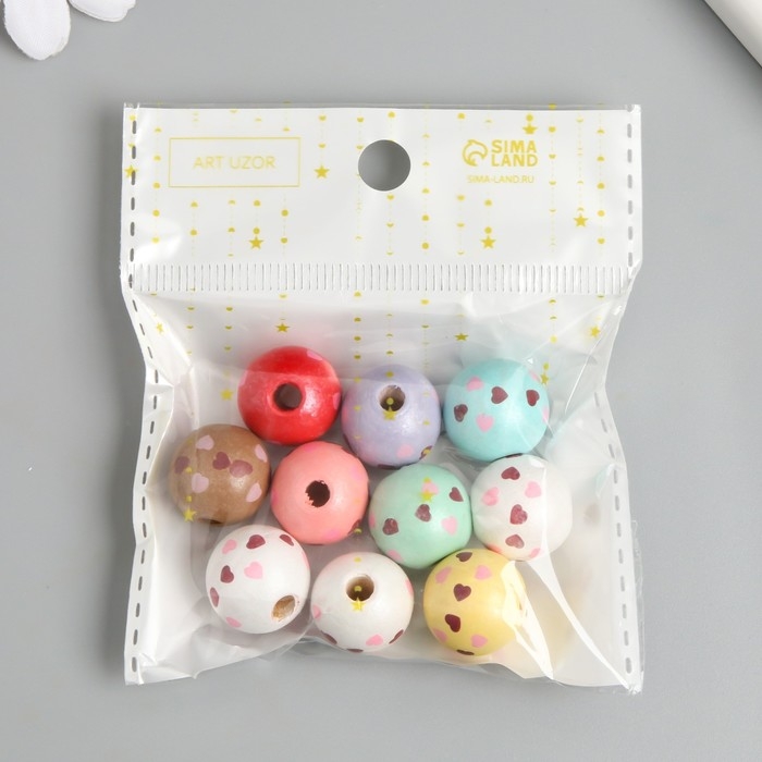 Бусины для творчества дерево "Сердечки на шариках" набор 10 шт d=1,6 см
