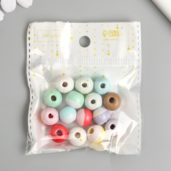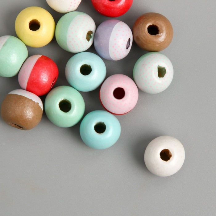 Бусины для творчества дерево "Крапинки на шариках" набор 15 шт d=1,2 см