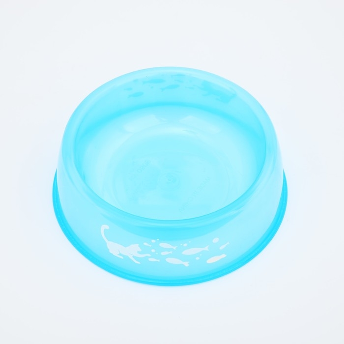 Миска пластиковая «Котик с рыбками», 300 мл, синий