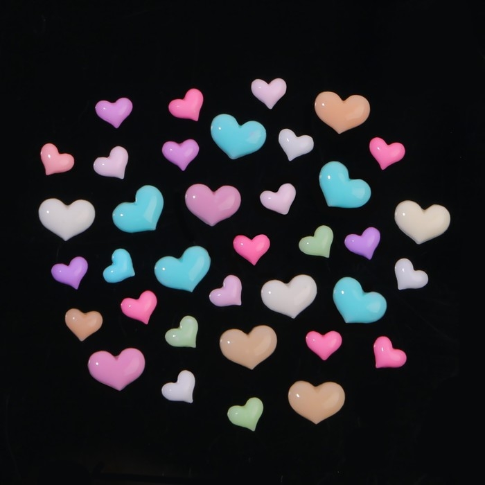 Фигурки для дизайна ногтей «Сердца», объёмные, цвет разноцветный