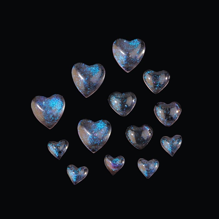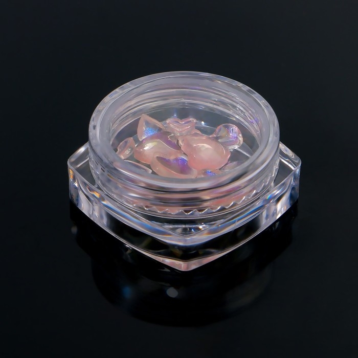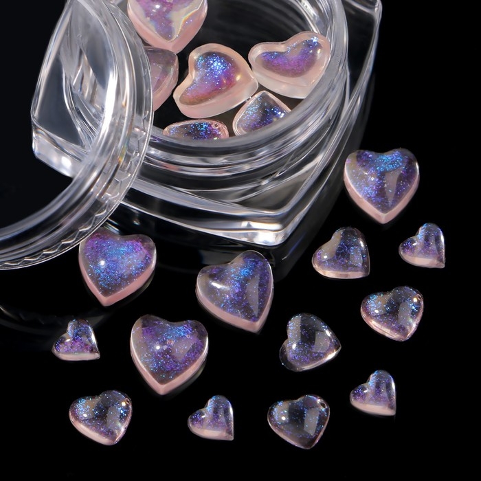 Фигурки для дизайна ногтей «Сердца», объёмные, с блёстками, цвет полупрозрачный/розовый
