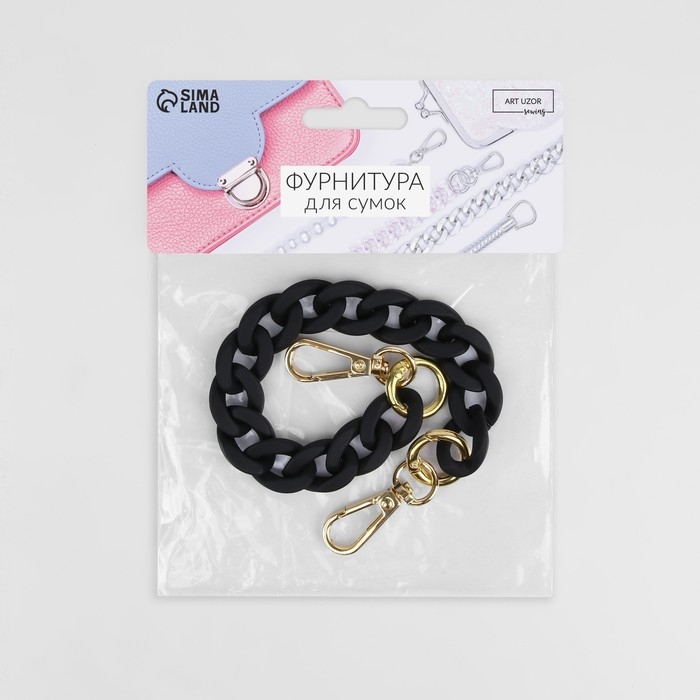 Цепочка для сумки, с карабинами, пластиковая, 23 × 17 мм, 30 см, цвет чёрный/золотой