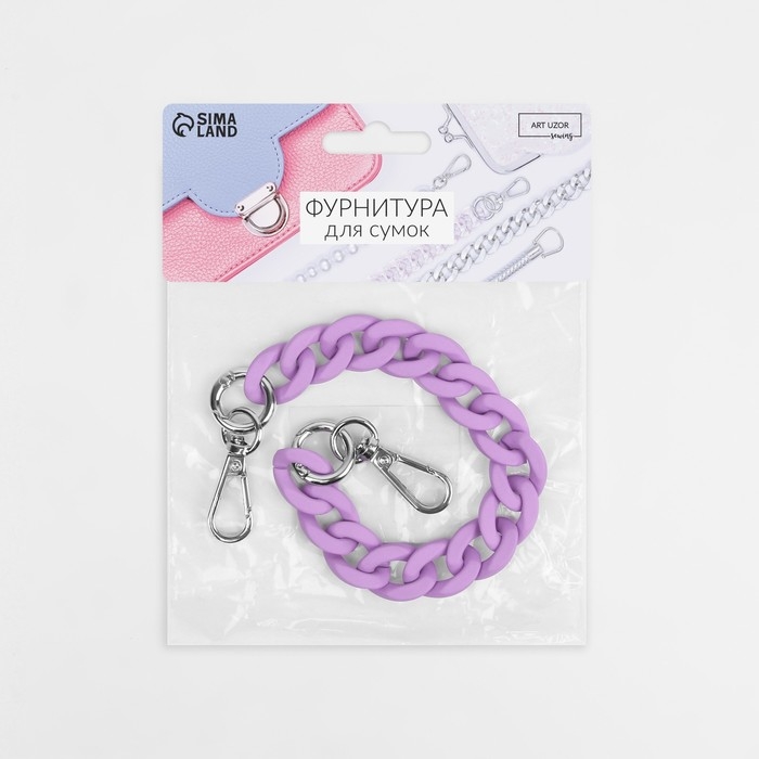 Цепочка для сумки, с карабинами, пластиковая, 23 × 17 мм, 30 см, цвет сиреневый/серебряный