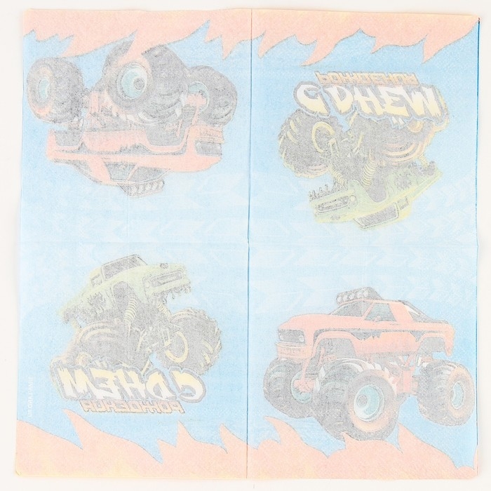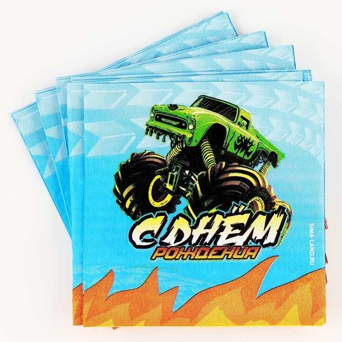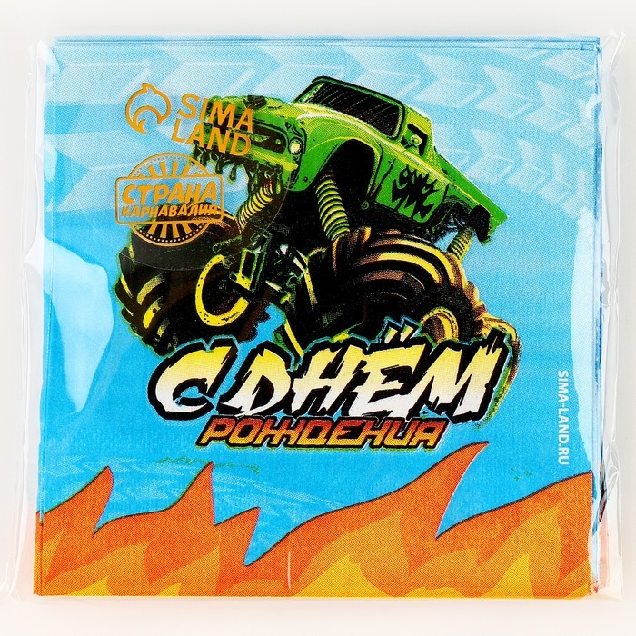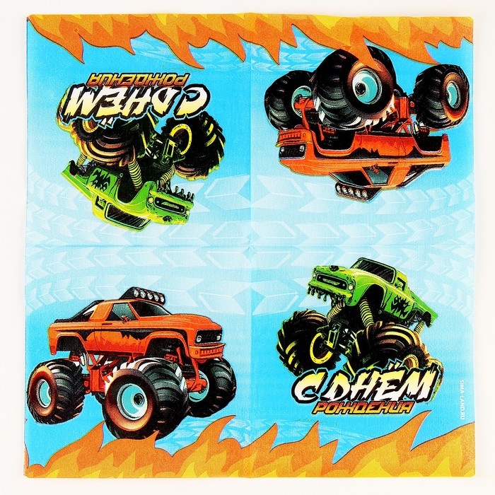 Салфетки бумажные 25*25см "С днём рождения" тачки (набор 20 шт)