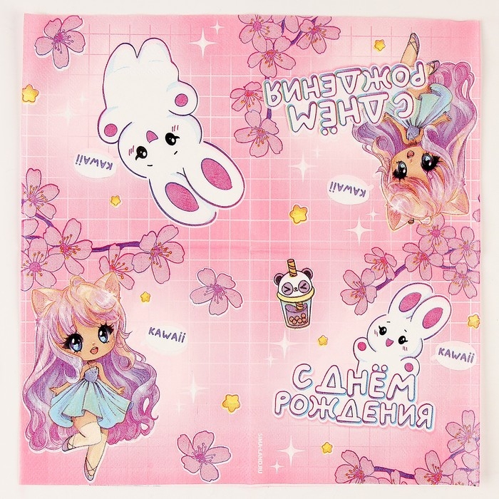 Салфетки бумажные 25*25см "С днем рождения" (набор 20 шт)
