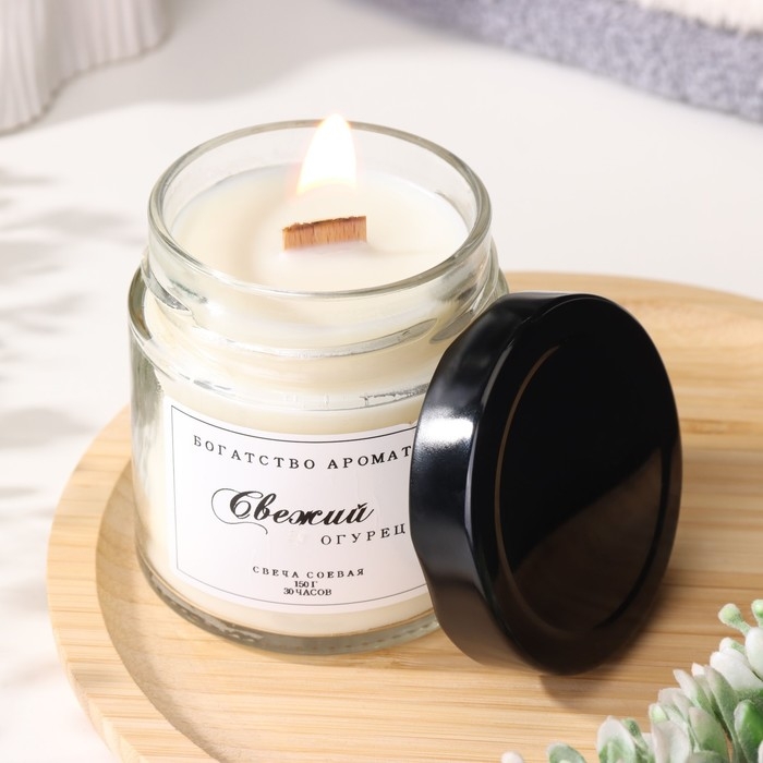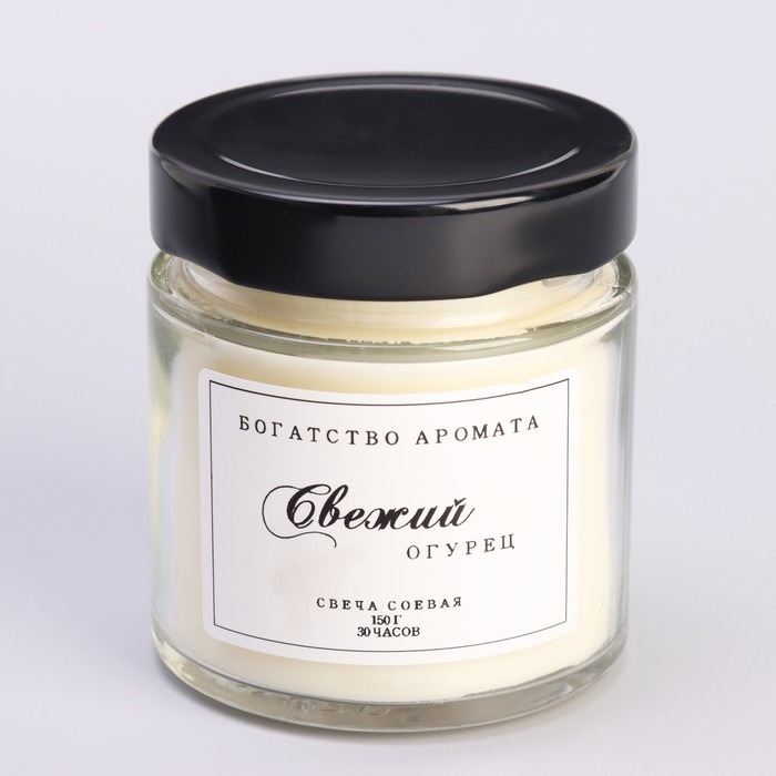 Свеча ароматическая из соевого воска в банке, 150 г, свежий огурец