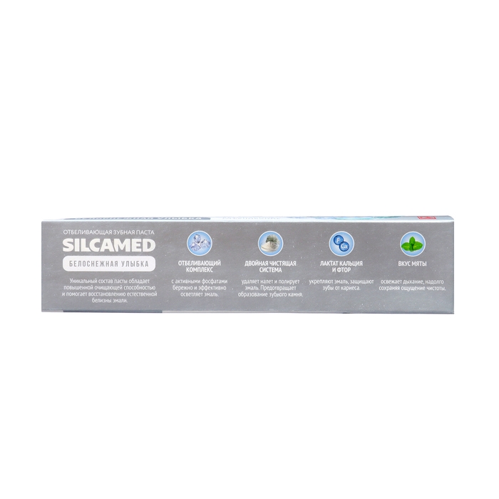 Зубная паста SILCAMED "Белоснежная улыбка" обладает приятным вкусом и ароматом, что делает ее использование более комфортным. Она подходит для ежедневного использования и рекомендуется для тех, кто хочет сохранить здоровье своих зубов и десен, а также получить белоснежную улыбку.