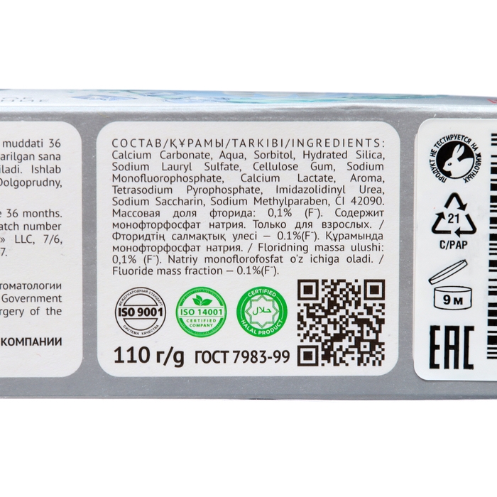 Эта зубная паста содержит активные компоненты, которые помогают удалить налет и пятна с поверхности зубов, делая их более белыми и яркими. Она также содержит минералы, которые укрепляют эмаль зубов и предотвращают кариес.