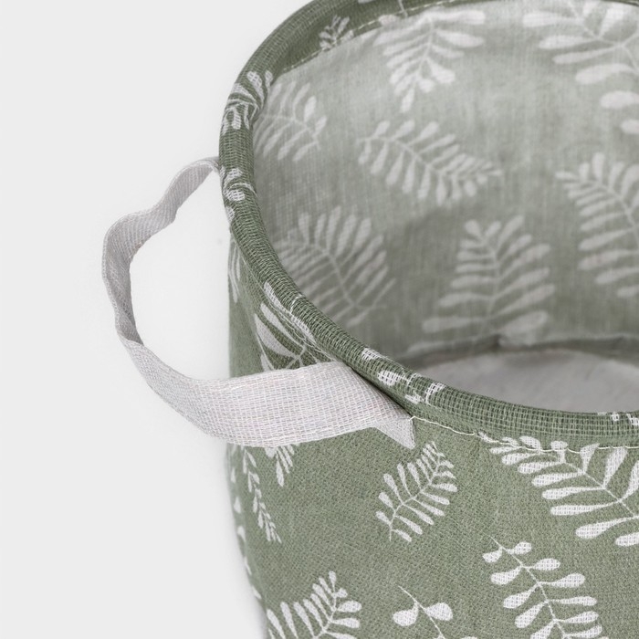 Корзинка для мелочей с ручками Доляна Leaves, 20×20×15 см, круглая, цвет зелёный