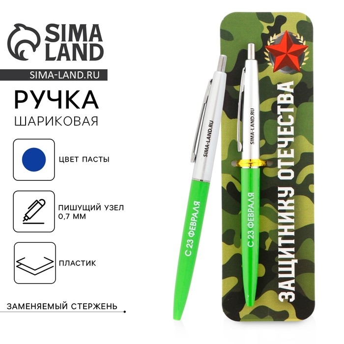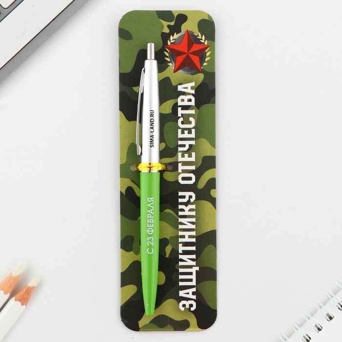 Ручка шариковая синяя паста автоматическая 0.7 мм «Защитнику отечества» пластик