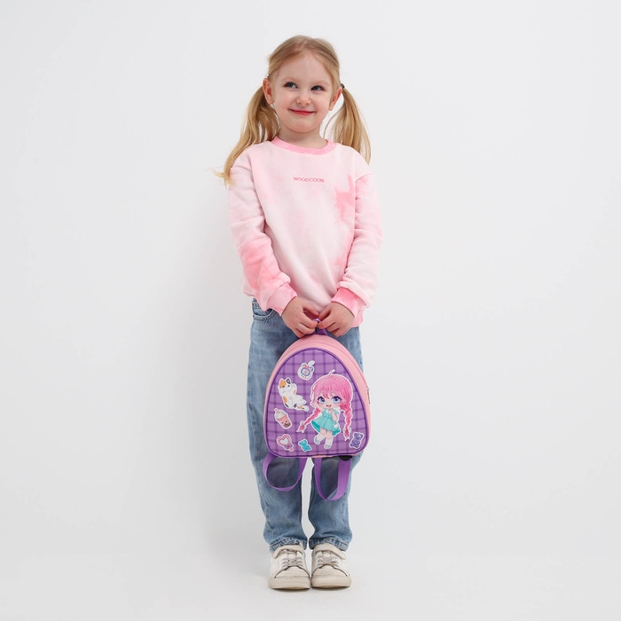 Рюкзак детский для девочки «Девочка аниме», 23х20,5 см см, отдел на молнии, цвет розовый