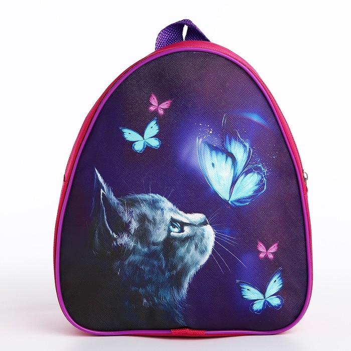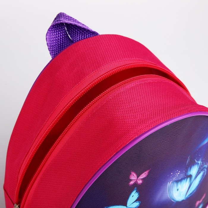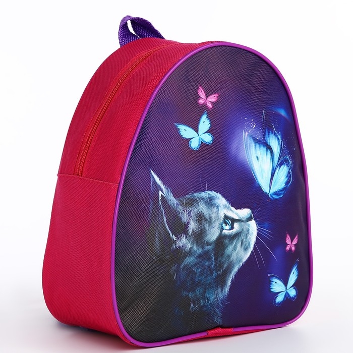 Рюкзак детский для девочки «Котик и бабочка», 23 х 23 х 20 5 см, отдел на молнии, цвет красный
