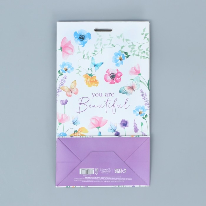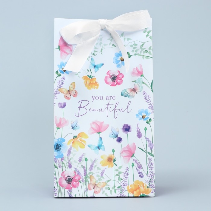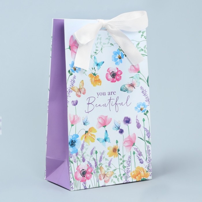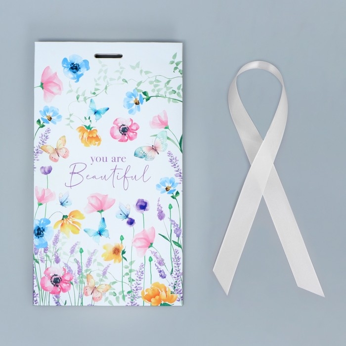 Пакет подарочный с лентой, упаковка, «Красота внутри», 13 х 23 х 7 см