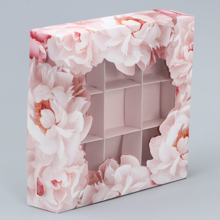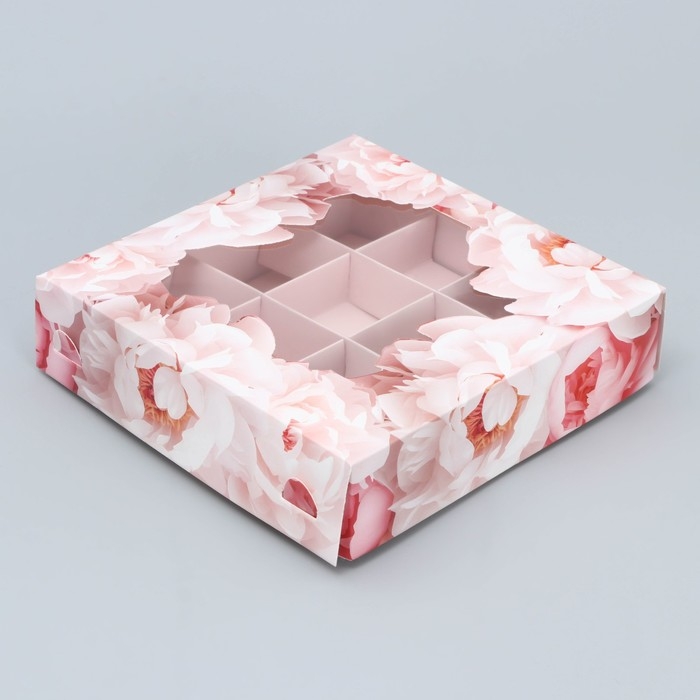 Коробка для конфет, кондитерская упаковка, 9 ячеек, «Нежность», 14.7 х 14.7 х 3.5 см