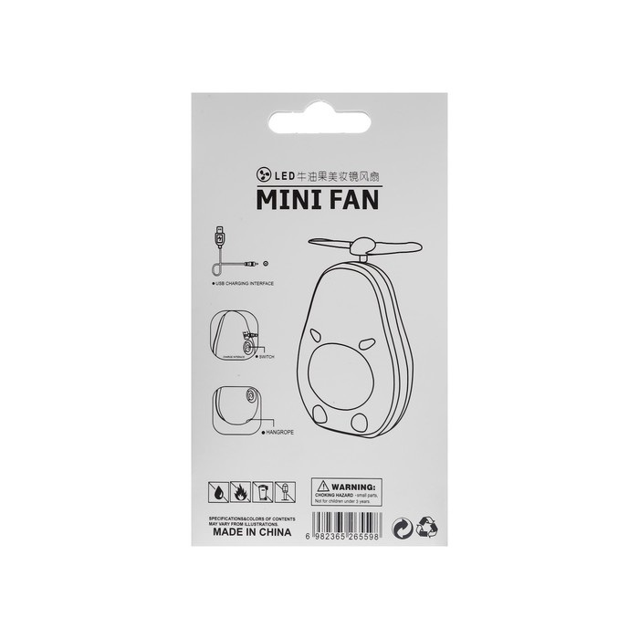 Зеркало KZ-08, подсветка, мини-вентилятор, АКБ, 500 мАч, 7 х 4 х 11 см, МИКС