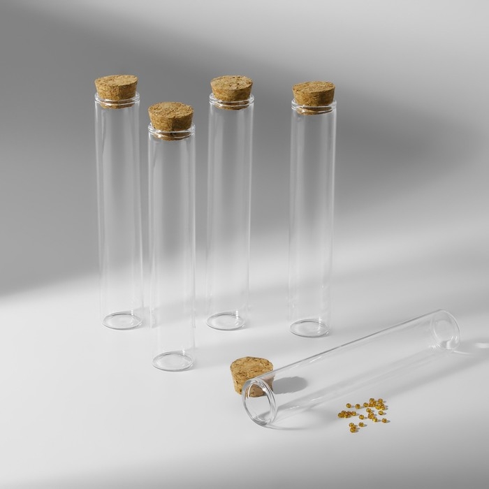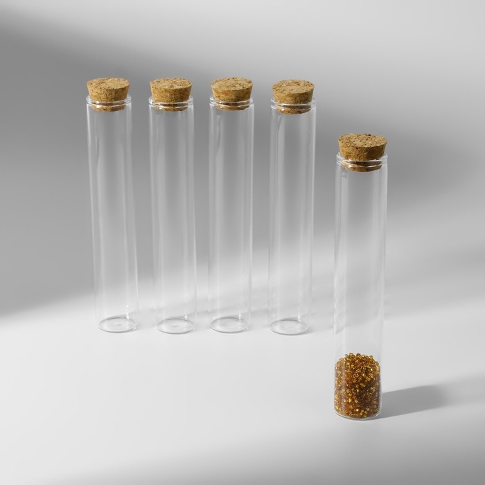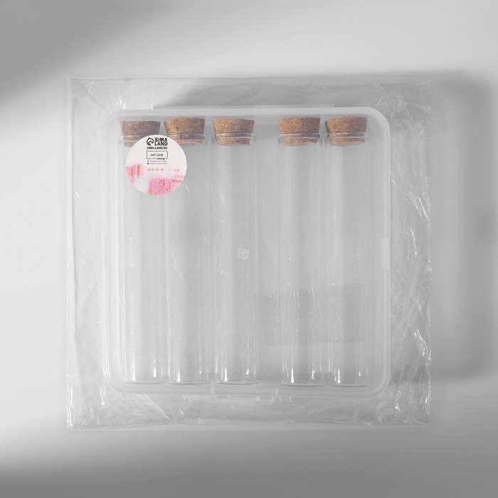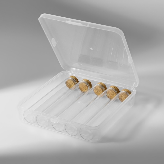 Набор баночек для хранения бисера, d = 2,2 × 12 см, 5 шт, в контейнере, 13,5 × 13,5 × 3,5 см