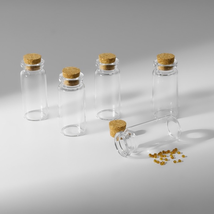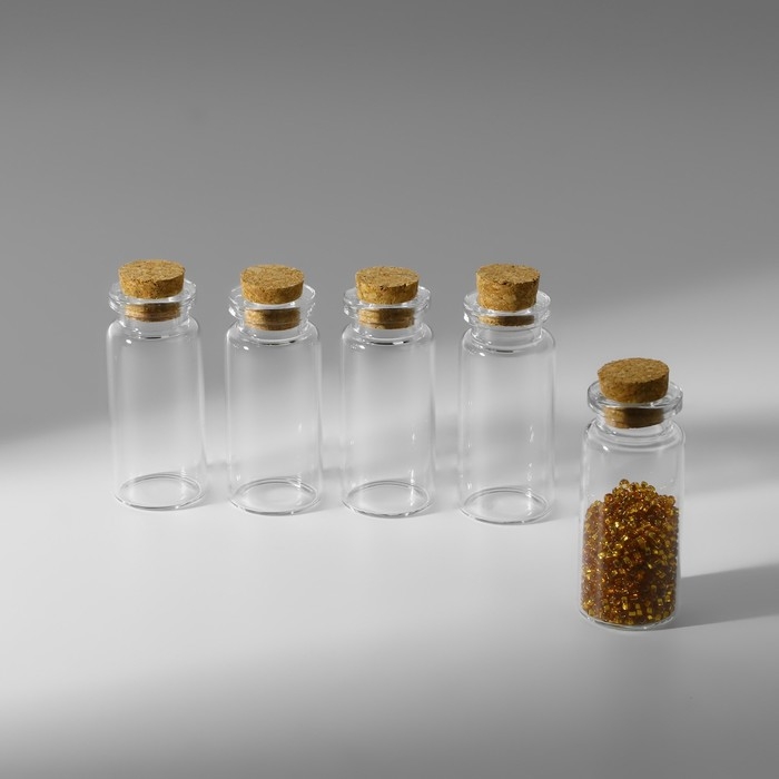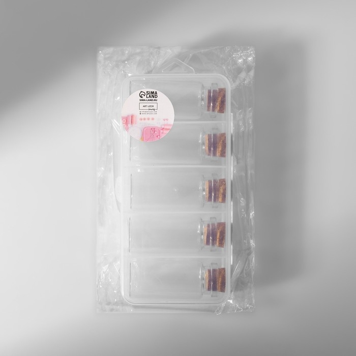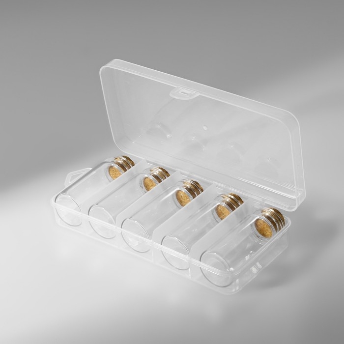 Набор баночек для хранения бисера, d = 2,1 × 5 см, 5 шт, в контейнере, 12,8 × 6,5 × 2,5 см